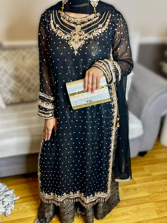 Khwab by Oranjeta – Black Chiffon Bridal Maxi