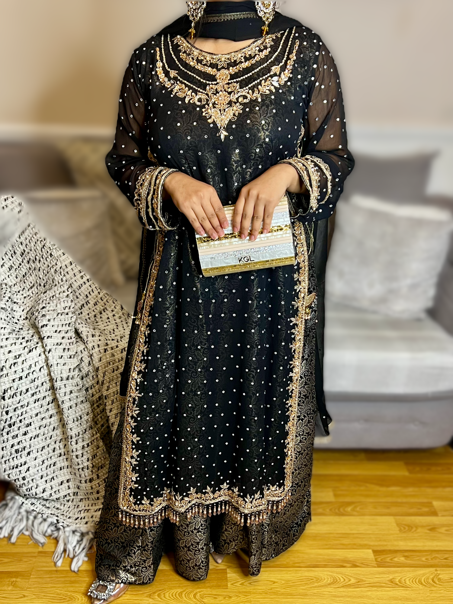 Khwab by Oranjeta – Black Chiffon Bridal Maxi